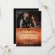 Halloween eller Goth bröllop spara datum med ett foto av er två med tryckt spindelnät i hörnen, och du sparar datumtexten i ett gotiskt teckensnitt mot en bakgrund med störd orange med flygande fladdermus. Halloween sparar datumet med ditt foto, fladdermus och spindelnät. Orange och svartvitt spara personligen med ett foto för att informera dina gäster om din kommande resa till bröllop.