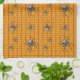 En ljus orange-bakgrund skapar en perfekt Halloween-temad bas för en upprepande mönster av svartwebben som kryper med spindlar. Dessa spindlar, modellerade efter den falska änkan, har ett starkt vitt skalle på abdomenen och andra vita markeringar på kroppen och ben.