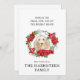 Handdragen vattenfärgsdesign av ett försiktigt spinone Italiano-huvud med en vacker krans som visar grenar och blommor av typen lovey Poinsettia. Detta kort gör att varje hund älskare leker och visar att hund är en del av en kärleksfull familj. Byt ut känslomässig fras och anpassa den till din familj namn eller bara till hund namn.