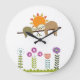 Baby och mor sover i mitten av dagen på träd gren, med ett ljust sol som bakgrund och vackert flora under. Den här roligtens klockdesign är lämplig som gåva till liten flicka, pojke eller dagis.