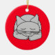 En sovande grått-katt med ett leende på ansikte mot en röd bakgrund är en roligt presentdesign för kattdjur älskare, djurskyddsarbetare och kattfosterfamiljer.
