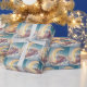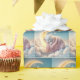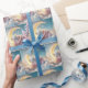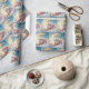 En flytande vit kattunge som svävar i fred med krescent måne, inslagen i en mjuk rosa filt