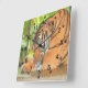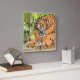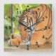 Ett nära skott av en vacker tiger som sover på den underbara väggklockan i kvadrat eller runt stilar.