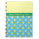 En nätt spiral anteckningsbok som ska personifieras, med ett mönster av Primroses och gröntpolka dots på en himmelblåttbakgrund, teamed med gult- och vitpolka dots; del av den Posh & Painterly "Primroses" samlingen.