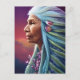 Vackra vykort har en AI-film som ger en gammal serenanda som Native American-själen i bedövningsdetaljer, inklusive pastel och blått hår med blommor och en orange och lila himmel färgad bakgrund.