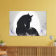 Discover the timeless majesty of this work that fuses equine elegance with nature's magic. The horse's silhouette emerges from shadows, wrapped in a luminous halo and delicate flowers. Exclusive art that transforms any space into a sanctuary of sophistication and serenity.