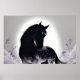 Discover the timeless majesty of this work that fuses equine elegance with nature's magic. The horse's silhouette emerges from shadows, wrapped in a luminous halo and delicate flowers. Exclusive art that transforms any space into a sanctuary of sophistication and serenity.