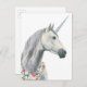 En vit enhörn med mjukt halsband av blommor. Konstnär: James Wiens