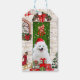 Spitz Hund jul sitta utanför det dekorerade hemmet med julkrans, Julgran är en julklapp för hundälskare i perfekt.