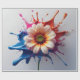 A vivid flower bursts to life at the center of bold paint splashes in red, blue, pink, and orange. This energetic, modern design blends nature with artistic flair—ideal for dynamic and creative wrapping paper.
