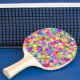 Denna ljusa pingpong paddlar design har en regnbåge av färg som plaskas på den i en splatter för att måla stil. Som påminner om av fauvist- och expressionistkonst, göras mönster in skuggar av rött, gult, purpurfärgat, grönt och blått. Det är en abstrakt, en nyckfull design för en konstnär eller någon, som behöver sätta en klocka på något, vibrerande färg i deras liv. Tyck om det som-är eller använder det som en blända bakgrund för din foto eller text.