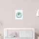 Tillsätt charm i ditt utrymme med denna söta sköldpadda-i-kar barnbadrumsväggkonst i mjuk teal och akvatisk akvarellstil.