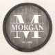 Split Monogram Family Namn Rustic Mörk Wooden Underlägg Papper Rund