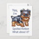 Cute Yorkshire Terrier-valpen med "Ja, jag är förstörd rutten." Vad sägs om det?"