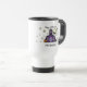 En Halloween mugg för lärare som presenterar en illustration av en purpurfärgad "spökad Schoolhouse", omgav vid stjärnor och en fullmåne. Schoolhousen har en jack o lantern, en svart katt, spindelnät och fladdermöss. Bästa text läser "happy halloween!", Personifiera med ditt namn på grund.