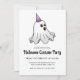 Det lilla spöket med hans lila party hat är redo för en underbar Halloween-dräkt party.