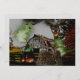 Energiskt Förstärkt GLAD HALLoween HÄLSNINGSKORT med fladdermöss som flyger i skymningen, spöklik lada, kusligt träd / träd, SPÖKLIGA spöken och en ladugård på landsbygden som bakgrund.