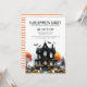 Välkommen gäster till en Halloween-kostymfest med denna roliga och enkla festinbjudan. Ett enkelt svart och vitt utseende som har en blandning av prydlig och serif-teckensnittstypografi. Längst ner finns ett svart spökhus med orange färgglada inslag från orange pumpor, jack-o'-lanterns och träd. Några söta små spöken och fladdermöss rundar av detta roliga utseende. Teckensnittet har en lite grunge eller slitna känsla för en vintage gammaldags vibe. På baksidan finns ett orange och vitt randigt mönster, men du kan faktiskt ändra detta utseende genom att ändra antingen bakgrundsfärgen eller färgen på själva randen (eller båda!). Elegant Svart Vitt Orange Spökhus Vuxen Halloween-festinbjudan Sp