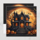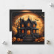 Spökhus med halloween-pumpor och fladdermöss under fullmåne, Glad Halloween