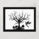 Överför en lite spöklik hälsning med denna kusliga felika vykort. Den svartvita silhouettedesignen visar ett litet felikt flyg nära ett träd med lockiga virvlade runt grenar. Lilla giftsvampar av varierande storleksanpassar växer nedanfört träd. Designen inramas av en svart gräns. Perfekt gåva för någon Halloween, fe eller fantasiälskare. Skräddarsy och/eller personifiera designen med din egna text.