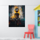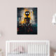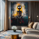 Dyk in i den rå intensiteten i detta samtida expressionistiska konstverk. En spektral figur med ihåliga, lysande ögon framträder ur en kaotisk bakgrund av djupa skuggor och eldiga stråk, och frammanar en känsla av isolering och obehag. De djärva, strukturerade penseldragen och den droppande målartekniken skapar en visceral, kuslig atmosfär, vilket gör detta verk perfekt för älskare av mörk abstrakt konst, psykologisk djup och avantgardeestetik.