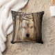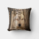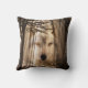 Fotoet av ett vargansikte lade över på ett foto av skogen med en sunbeam som allt i varierande skuggar av brunt, eller jord tonar den unika och intressant dekorativ kudde