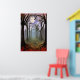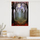 En skog med fläckig träd och röd och grönt, måne skiner i himlar. Detta är en AI-genererad konst