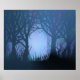 Digital grafik som skildrar en vinter-skog med mörk på spokus nattetid.