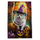 Förbered Halloween-andan med den här fantastiska designen som har en söt hund i en häxhatt omgiven av skrapade pumpor. Perfekt för att lägga till en aning pooky charm till ditt festliga firande.