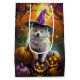 Spooky American Eskimo Halloween Witch och Pumpkin