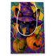 Förbered Halloween-andan med den här fantastiska designen som har en söt hund i en häxhatt omgiven av skrapade pumpor. Perfekt för att lägga till en aning pooky charm till ditt festliga firande.