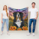 Spooky Bernese Mountain Halloween Witch Pumpkin Fleecefilt