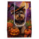Spooky Biewer Terrier Halloween Witch och Pumpkin