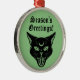 Lägg till ett örncharm till din helgdag-décor med den här runda metall-dekorationen som innehåller en fläckig svart kattskalleillustration och ord "Season's Hälsning" i fet stil ovan, mot bakgrund av en festlig grönt. Perfekt för kattälskaren med en mörk, blandar detta prydnadsämne helgdag med gotisk och skräckinspirerad inslag. Den skrämmande svarta katten skapar en slående kontrast mot grönten, skapar detta som en must-over för dem som kärlek ser en läskig och unik helgdag. Detta prydnadsämne är en idealisk gåva till alla som talar om svarta katter och tycker om att lägga till en skämtsnurra till festsäsongen. Vare sig du dekorerar ditt eget träd eller söker efter perfekten på plats, kommer den här vackra julprydnaden att imponera. Underbaren för fläkt av fasansfulla, gotiska estetiska och läskiga helgdag kommer att framträda i alla samlingar.