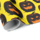 Trendig Halloween omsluter papper med fläcksvarta pumpor på en ljus gult bakgrund. Perfekt för inslagning av gåvor till trick-or-treat-party, hösttematiska evenemang eller till festliga tillfälle. Idealisk för att du har fått en festlig beröring på Halloween firande!