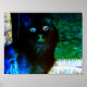 cat in negative... spooky with glowing eyes and brilliant blue and green colors