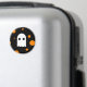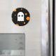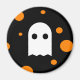 Det här söta spöket finns på en orange och en svart polka-punktbakgrund.