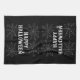Lägg till en snyggt i köket med Halloween-handduken med ett fet "Happy halloween"-meddelande som är framskridet av invecklade vita spindelnät och en farlig spindel på en dramatisk svart bakgrund. Perfekt för torkning av diskar, dekorering av kök eller användning som säsong-accent, denna tåliga och absorberande handduk ger till ditt vardagliga väsen. Perfekt för hemsökt party, fall underhållning eller som en unik gåva till Halloween älskare.