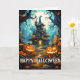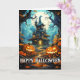 Det här kortet har en spooktaculär mansion som skyddas av vissa glödande pumpor. Du kan redigera texten för att göra detta Halloween-kort personligt och ett av ett slag.