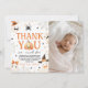 Skicka en söt och skämtsam tacksamhet med det här fotokortet på en födelsedag. Med vattenfärgspumpor, spöken, kaminer och utrymme för ditt barns foto är det här kortet en perfekt för att fira din lilla första boo-dag i stil. Ett festligt sätt att tacka vänner och familj för gåvor, party roligt och ljuva minnen.