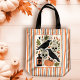 En scen med eerie ravens, gift och döskallar med falllöv mot en gräddbakgrund med hand plockade orange och svart rand.
