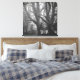 Spooky Forest Black and White Photography Hur vacker men obekväm naturen kan vara. Föreställ er att man går genom denna skog med dimman och krunknar i fallande löv med det blå grenar-huvudet. När en enda kråka kommer in i avstånd hoppar du bara lite. Perfekt att få redo till Halloween.