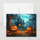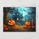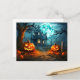 Det här toppen-skåpet Halloween-vykortet har ett hemsökt hus och några ynkliga glödande pumpor i månljuset.