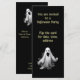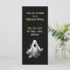 En inbjudan till ett Halloween fest med ett spöke och information på båda sidor.