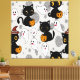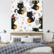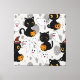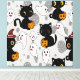 Roligt och spooky Halloween-vibe med söt tecknad svart katt omgiven av lekfull och vänlig katt.