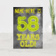 På framsidan av den här tittar, redigerbara utformningen av födelsedagskortet finns meddelandet "58 ÅR gammal!" med tecken och siffror som har ett glansigt glansigt utseende, inspirerat av en mystisk grått grumlig, missinnig bakgrund mönster. På framsidan finns också en mottagare av anpassadet namn. Insidan innehåller ett hälsning-födelsedagsmeddelande som kan anpassas. Ett sådant här hälsningskort för anpassadets födelsedag kan ges till minneshögtiden för någons femtioåttonde födelsedag. [~Z0000365]