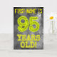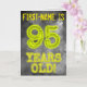 Anpassadets födelsedagskalender tittar på framsidan av detta skådespel, med tecknen och siffrorna som har ett artigt glansande aura-inspirerat utseende, på ett mystiskt grått grumligt, dimmigt inspirerat mönster. På framsidan finns också en mottagare av anpassadet namn. Insidan innehåller ett redigerbart hälsning-födelsedagsmeddelande. Ett sådant här hälsningskort för anpassadets födelsedag kan vara ett speciellt sätt att skicka en födelsedag hälsning till någon som firar sin 95-årsdag. [~Z0000365]