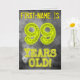 Anpassadets födelsedagskalender tittar på framsidan av detta skådespel, med tecknen och siffrorna som har ett artigt glansande aura-inspirerat utseende, på ett mystiskt grått grumligt, dimmigt inspirerat mönster. På framsidan finns också en mottagare av personlig namn. Insidan innehåller ett meddelande från hälsning på personligens födelsedag. Ett sådant här hälsningskort för anpassadets födelsedag kan ges till minneshögtiden för någons 99-årsdag. [~Z0000365]