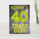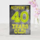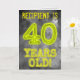 På framsidan av den här örren tittar anpassadets födelsedagskalender med texten "40 ÅR gammal!" med tecken och siffror som har ett glansigt glansigt utseende som inspirerats av en mystisk grått grumlig, dimmig bakgrund mönster. På framsidan finns också en mottagare av anpassadet namn. Insidan innehåller ett redigerbart hälsning-födelsedagsmeddelande. Ett anpassat födelsedag som detta kan ges för att fira någons fyrtioårsdag. [~Z0000365]