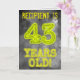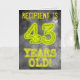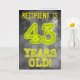 På framsidan av detta skådespel tittar personligens födelsedagskalendrar med texten "43 ÅR gammal!" med tecken och siffror som har ett mystiskt glansande aura-inspirerat utseende, på ett grått grumligt, dimmigt inspirerat mönster. På framsidan finns också en redigerbar mottagare av namn. Insidan innehåller ett meddelande från hälsning på personligens födelsedag. Ett sådant här hälsningskort för personligens födelsedag kan vara ett speciellt sätt att skicka ett meddelande från hälsning till någon som firar sin 43-årsdag. [~Z0000365]